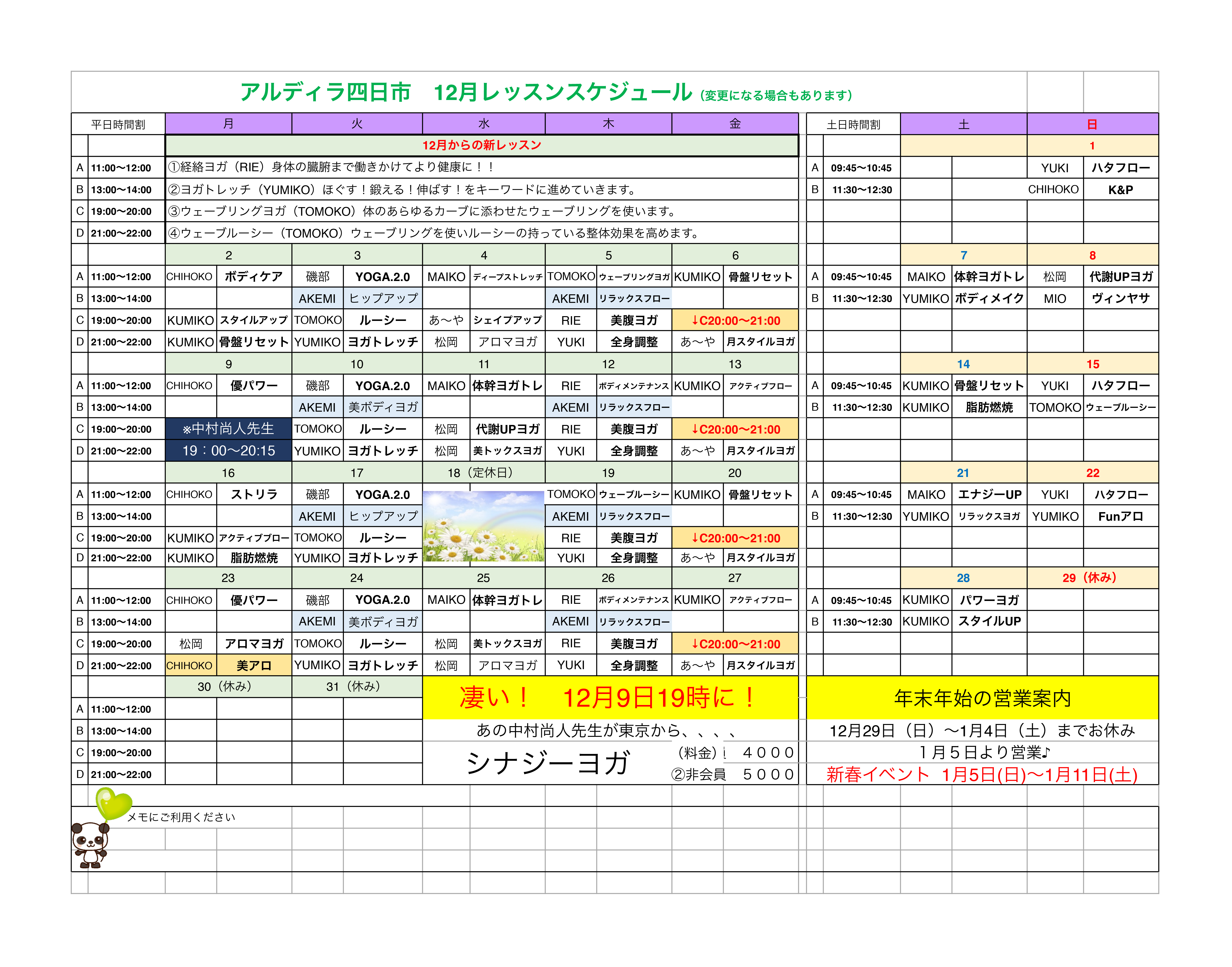 - 12月のレッスンスケジュールのお知らせ
